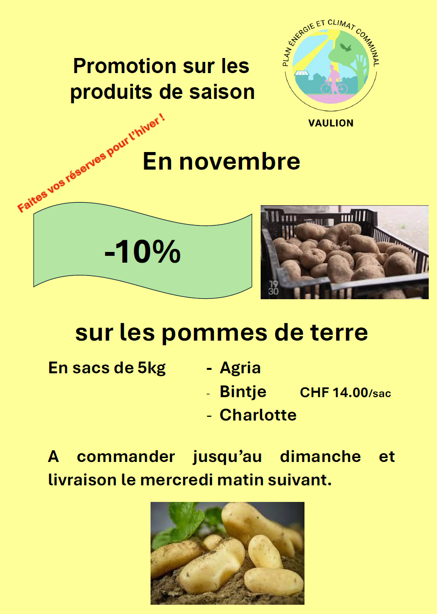 En novembre 2025 -10% sur les pommes de terre, voir condition ci-dessous